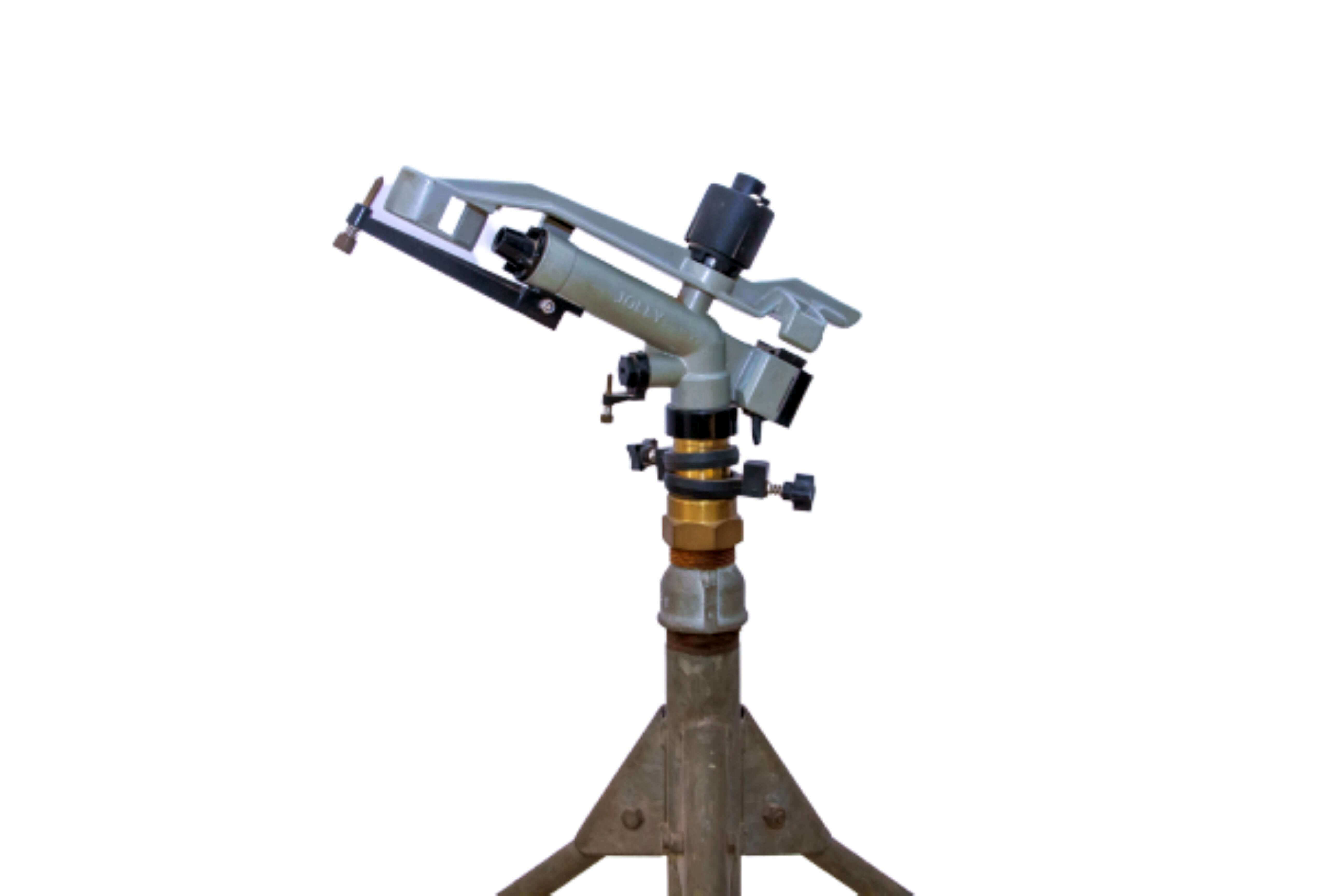 Jolly Impact Drive Sprinkler is constructed with a heavy cast aluminum body, aluminum drive arm and brass lower turning union.